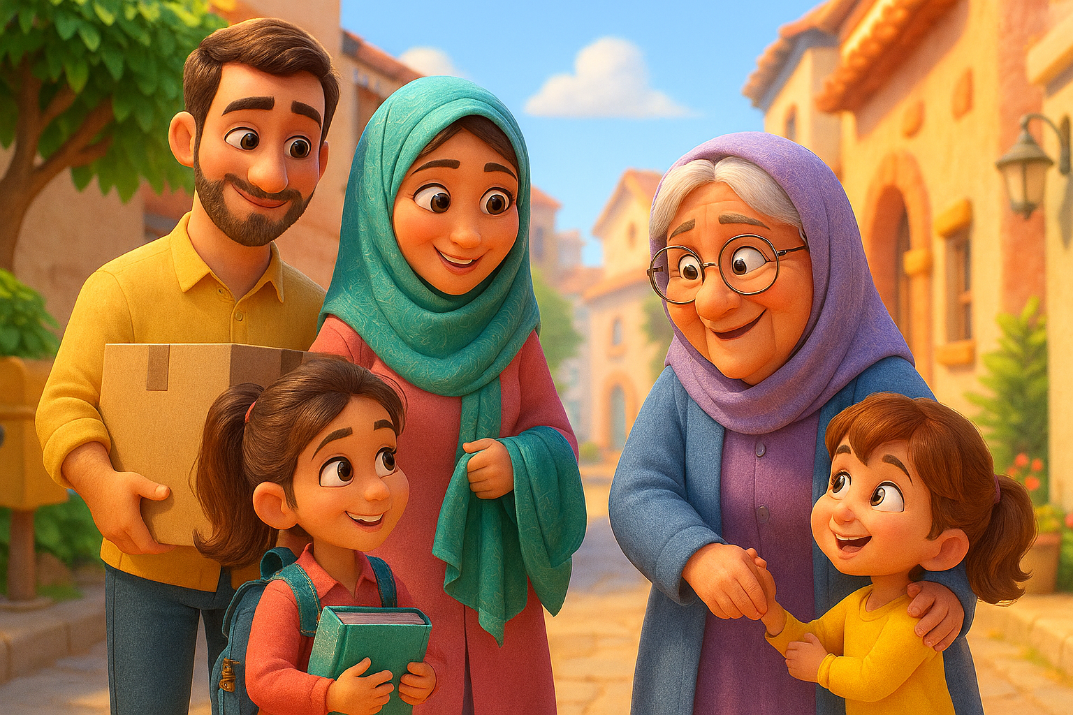 توی یه دهکده قشنگ، پر از گل‌های رنگارنگ ، بابا علی و مامان فاطمه با خدیجه جوون و حسن کوچولو زندگی می‌کردن. بابا علی یه مرد مهربون بود که همیشه لبخندش مثل آفتاب گرم و دلنشین بود . هر روز صبح، با یه سبد پر از نون تازه و میوه‌های آبدار می‌رفت سر زمینش و به همه کمک می‌کرد.